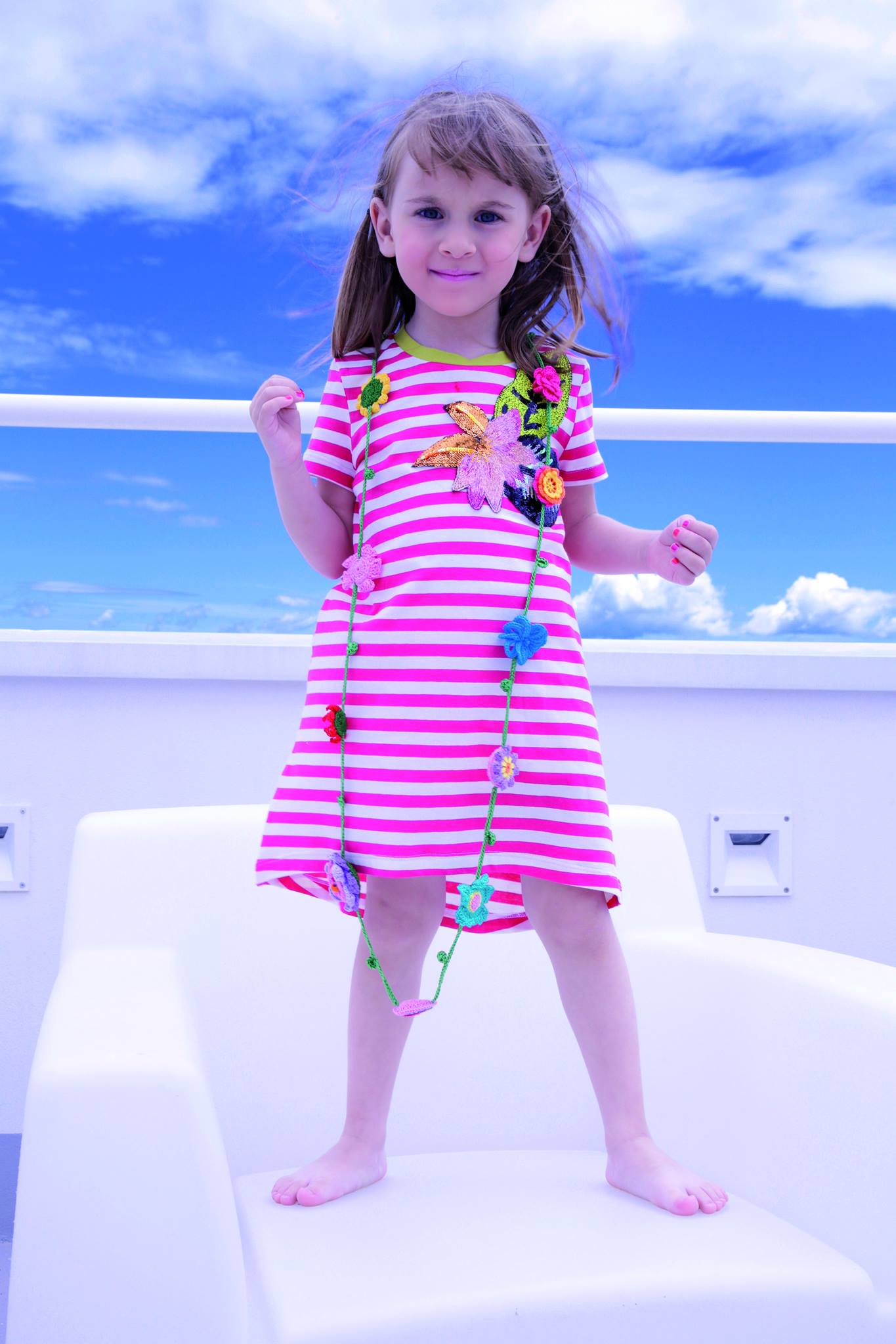 Abito BAMBINA lungo in jersey a righe con applicazioni in paillettes.