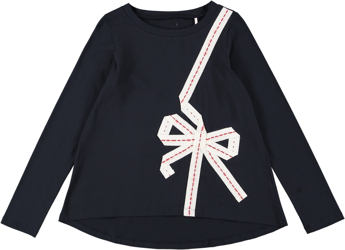 T-shirt in jersey di cotone stretch con passamaneria ricamata motivo fiocco