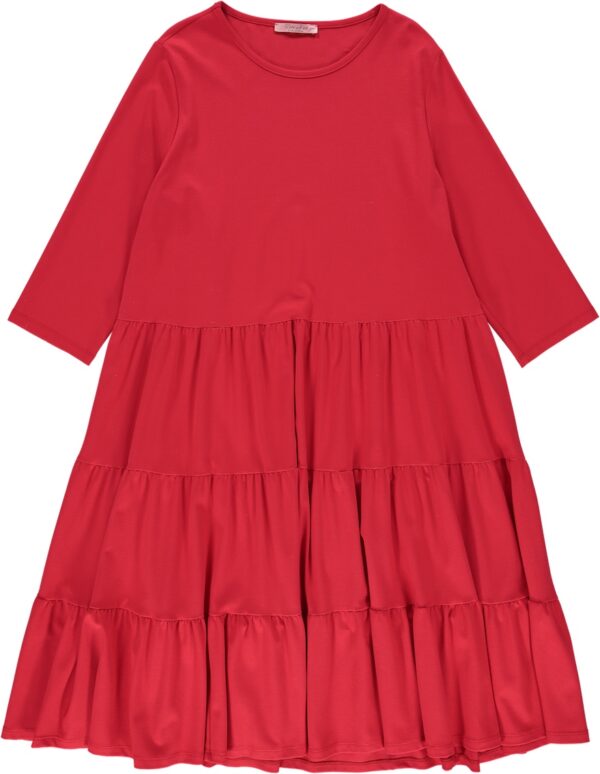 Abito lungo in punto milano con balze
