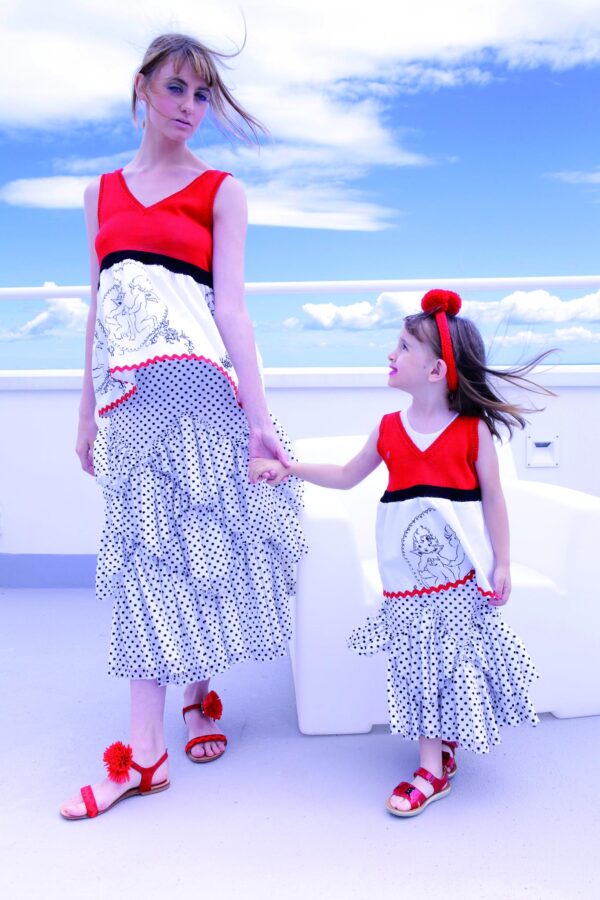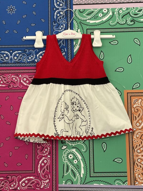 Top tricot BAMBINA con balza tessuto a stampa angeli