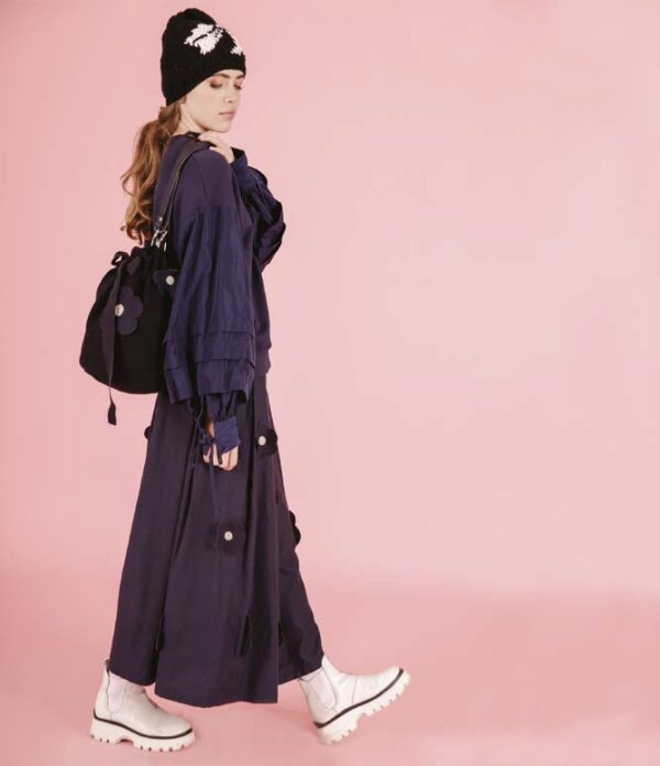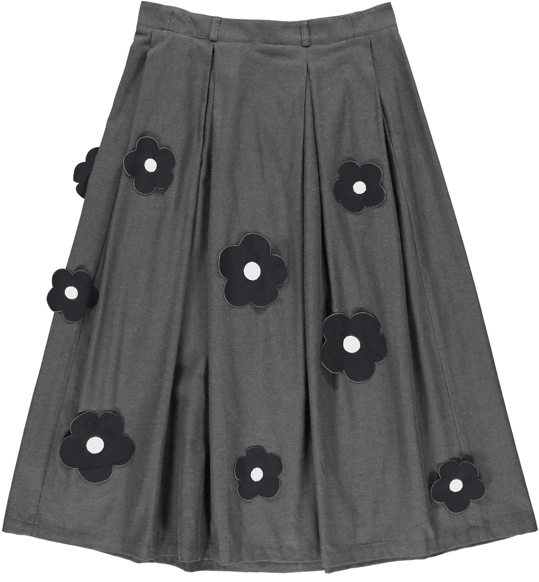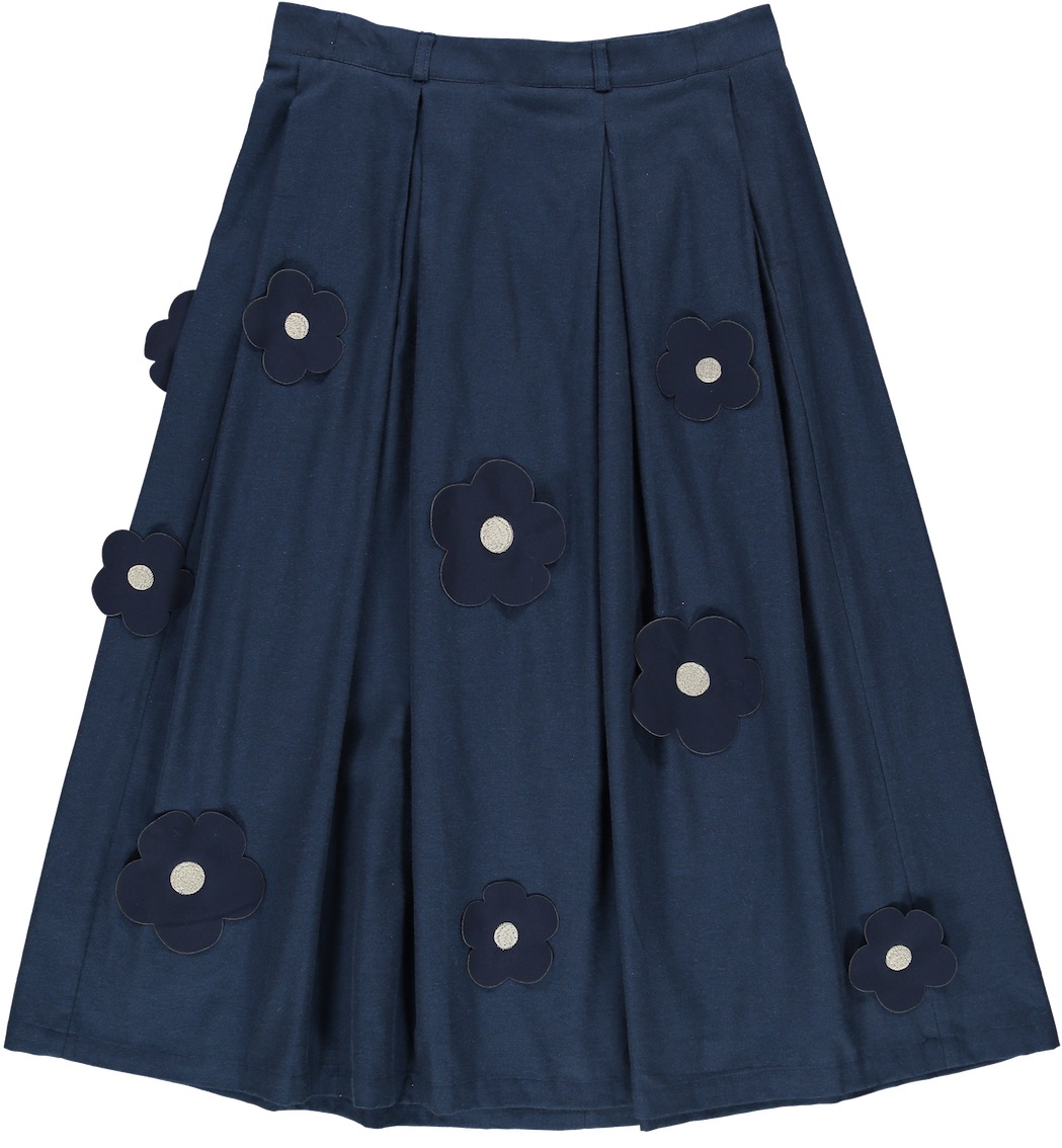 Gonna a pieghe in mussola di cotone con marghetire applicate
