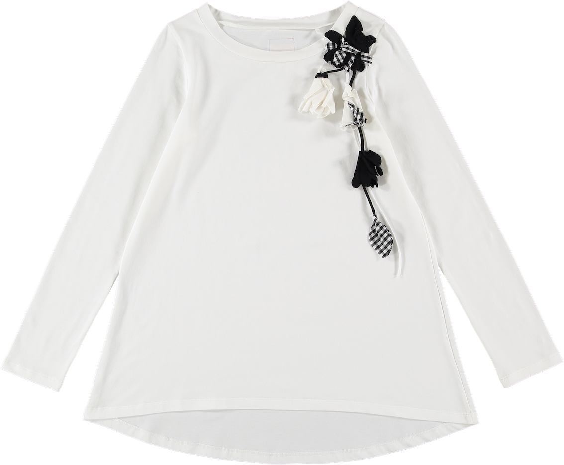 T-shirt in cotone stretch a manica lunga con spilla fiore a grappolo