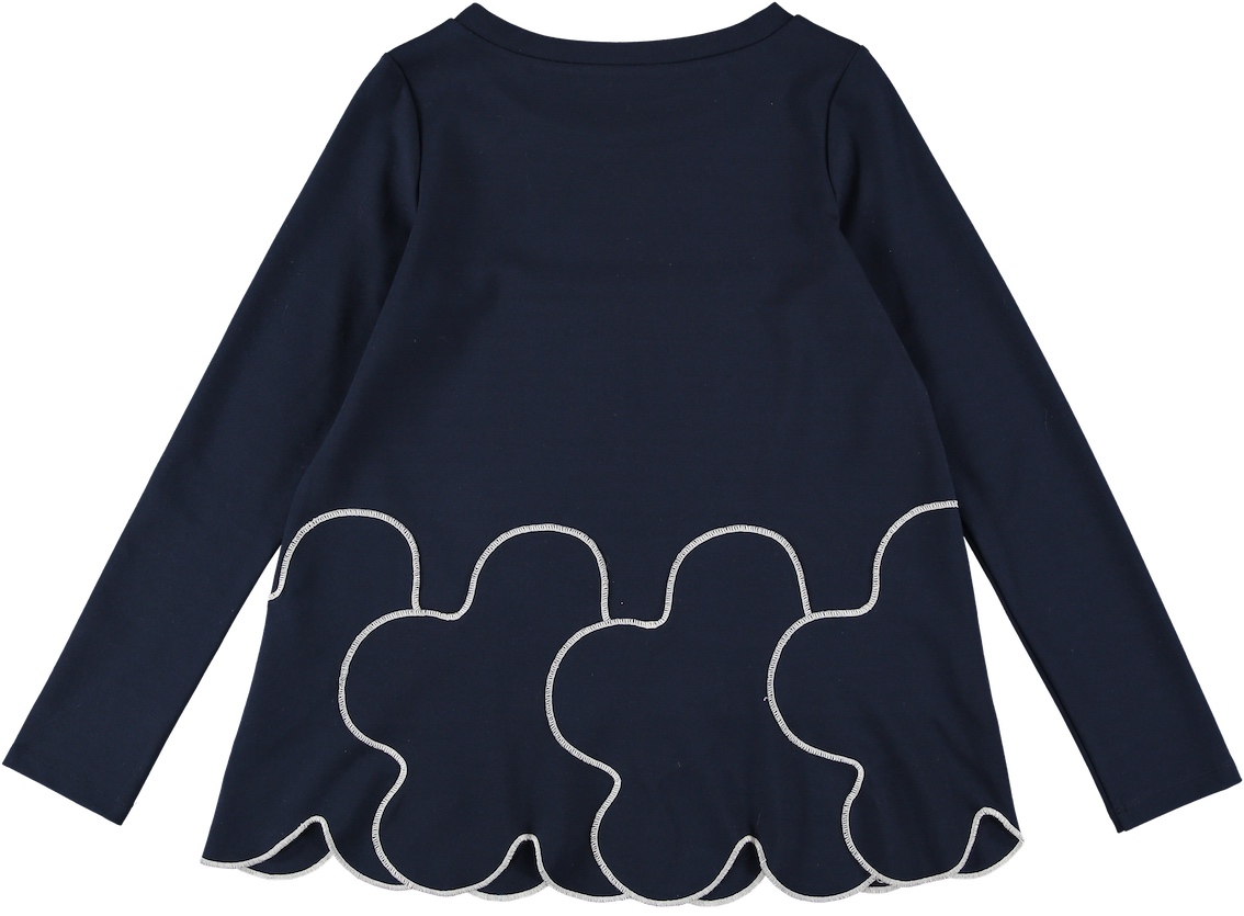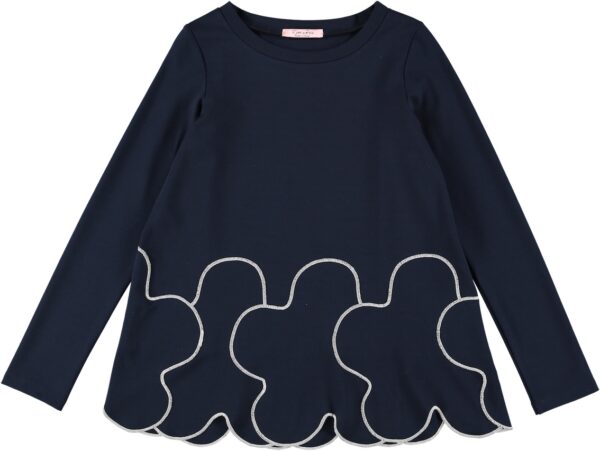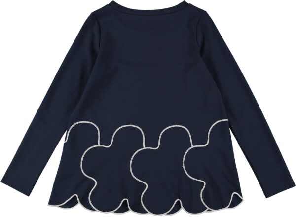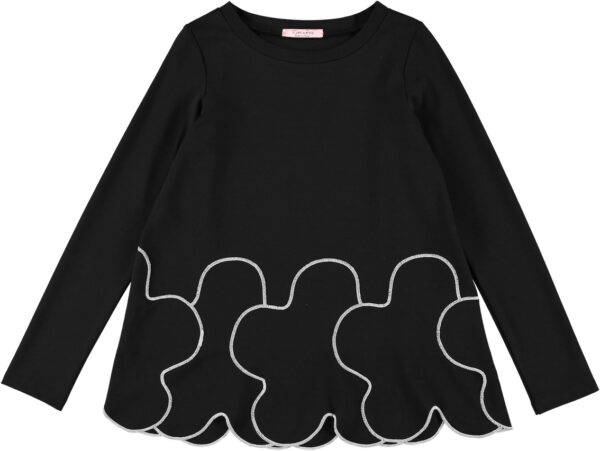 Blusa in punto milano con fiori sul fondo e cucitura a contrasto